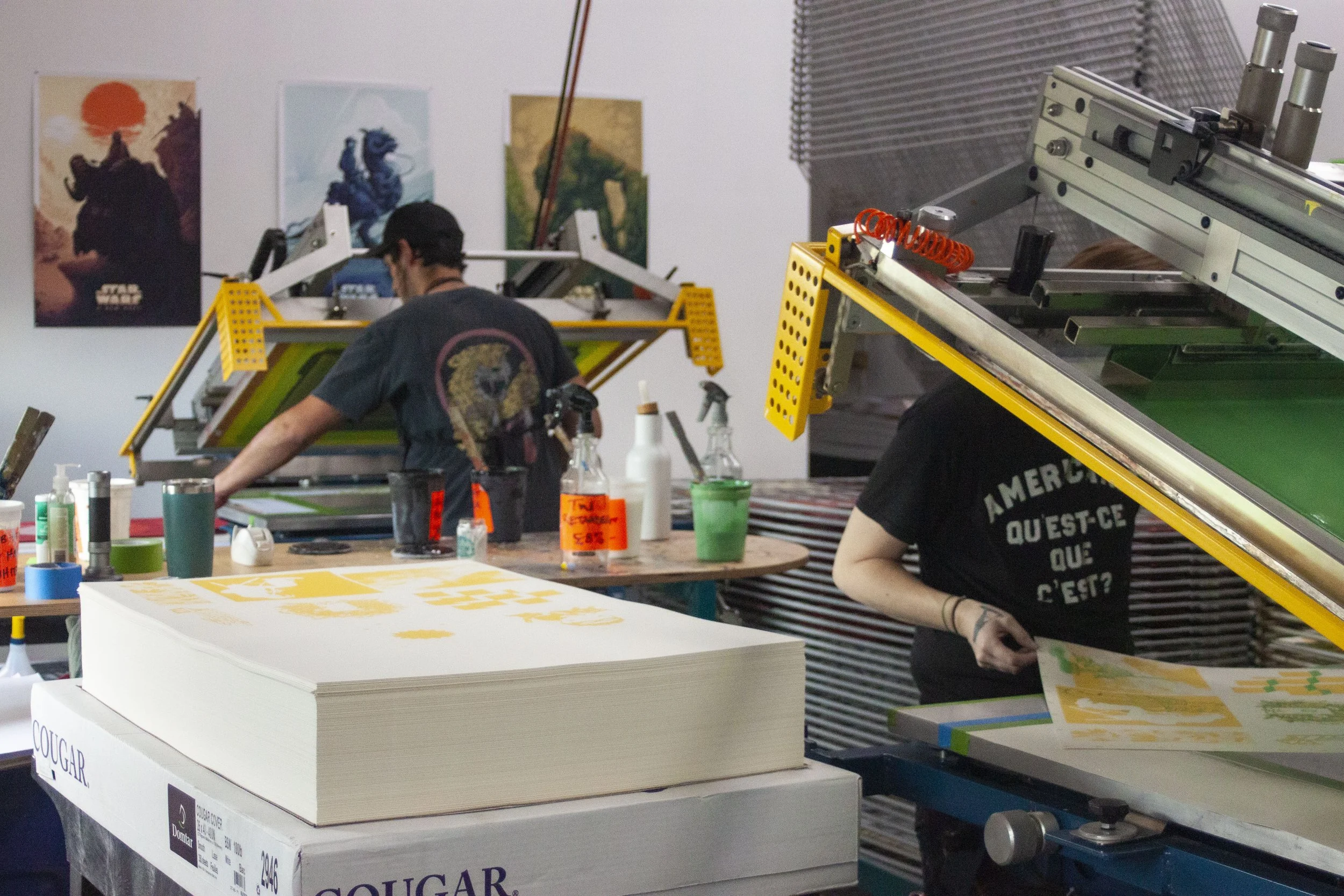 From gig posters and gallery editions to postcards, record sleeves, and other flatstock, we bring the same care and craft to every print. We use the highest quality acrylic inks that are made specifically for flatstock printing yielding prints that are durable, scratch resistant and vibrant. We take pride in our ability to hold tight registration, even on jobs with a high color count. Need help with color separations, paper choices, or edition planning? We got you.